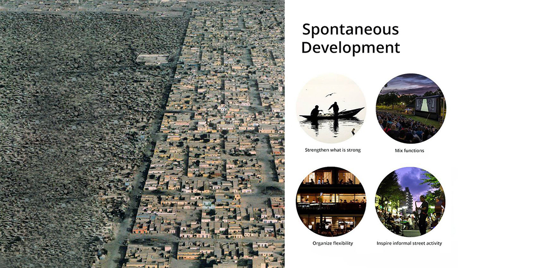 Opposed to traditional urban planning, which tends to be rigid and often devoid of personality, spontaneous development of a village, town or city allows resourcefulness, flexibility, and openness centered on the user. Focusing on a cross-sector collaboration amongst all stakeholders – planners & architects, investors, local government, and the community itself, this approach ensures that needs and desires are met, spaces are optimized, and investments are fruitful.